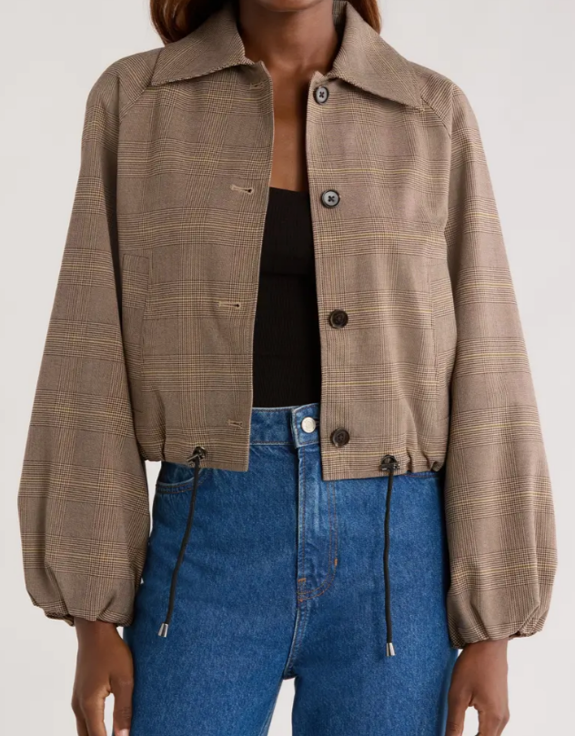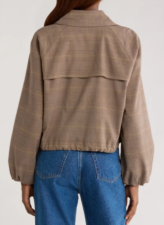 Jazzy plaid adds a tailored touch to this casual, drawcord-hem bomber jacket you'll reach for on repeat.
